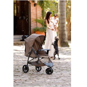 Carrinho de bebê com 3 rodas, oferecendo facilidade de manobra, estabilidade em terrenos irregulares e facilidade de direção. Ideal para pais ativos.