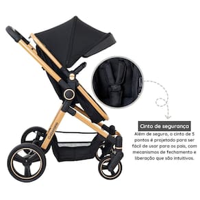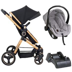 Conteúdo da Embalagem: 1 Carrinho De Bebê Moisés Galzerano Ivy Gold 1 Bebê Conforto Cocoon - Preto Cinza - Galzerano 1 Base Para Bebê Conforto Cocoon - Preto - Dzieco