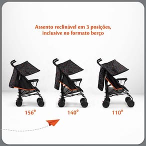 Características: Fechamento compacto e rápido: Fechamento estilo guarda-chuva, leve e fácil de transportar, com alça para levar a qualquer lugar. Assento reclinável: Três posições de inclinação, incluindo o modo berço, ajustáveis com uma mão. Capota ampla e extensível: Com visor, aba de sol e bolso porta-objetos, protege o bebê do sol e do vento. Apoio de pés ajustável: Possui cinco ajustes de altura, ideal para acompanhar o crescimento do bebê. Rodas duplas com travas: Estabilidade e controle total, com trava de giro 360 nas rodas dianteiras e freio interligado nas traseiras. Cinto de segurança de 5 pontos: Ajustável em altura e largura, com protetores acolchoados para máxima segurança. Cesto porta-objetos: Capacidade para até 3 kg, perfeito para carregar itens essenciais.