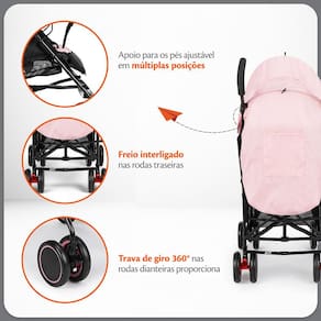 Carrinho de Bebê Guarda-Chuva Pipa Rosa Mescla - Voyage