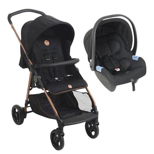 Carrinho de Bebê Lui Preto Cobre e Bebê Conforto Materna Preto