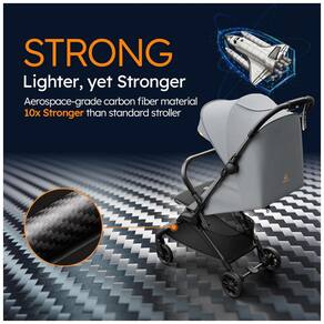 O carrinho de bebê MAMAZING Ultra Air X apresenta estrutura ultra-leve em fibra de carbono de grau aeroespacial, pesando menos de 4,5 kg, o que proporciona alta resistência, rigidez e absorção de impactos aliadas à facilidade de manuseio com uma mão.