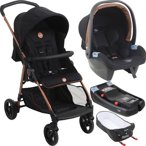 Carrinho de Bebe Burigotto Lui 22 com Bebe Conforto Materna, Base para Carro Belted e Ninho Moisés