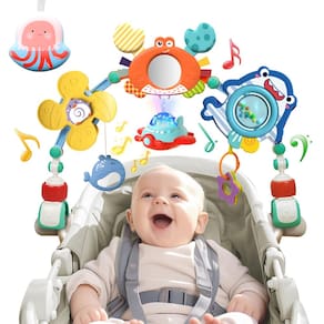 Nosso carrinho de bebê é um tema animal, como um moinho de vento em forma de joaninha, chocalho de borboleta colorido, abelha fofa e assim por diante que pode capturar a atenção do seu bebê, cultivar a curiosidade e estimular sua imaginação. Este brinquedo de arco de carrinho de bebê é uma ideia de presente única para várias situações, como festas de aniversário, que permitirá que seu bebê domine todos os tipos de conhecimento ao crescer. - Arco musical para bebês: nosso carrinho de bebê é um tema animal, como um moinho de vento em forma de pinguim, tubarão adorável, mordedor de baleia colorido e assim por diante, com várias músicas suaves que acompanham seu bebê para dormir - Brinquedos de assento de carro de viagem: a mão pequena segura os mordedores e puxa para baixo, o moinho de vento gira e o tubarão chocalha. Atrai bebês com belas cores e sons para brincar, para que eles não fiquem chatos ao viajar - Fácil de armazenar: o design dobrável maravilhoso adiciona mais diversão ao jogar. Este arco de atividade pode ser facilmente armazenado quando não estiver em uso, ajudando as crianças a desenvolver um bom hábito de armazenamento - Alta qualidade e seguro: Feito de plástico de alta qualidade sem cheiro! Este arco de brinquedo atende às necessidades de vários carrinhos, assentos de carro, carrinhos de bebê, carrinhos de bebê e berços, fixados em 2 a 5 cm - Ideias de presente perfeitas: este brinquedo de arco para carrinho de bebê é uma ideia de presente única para várias situações, como festas de aniversário, que permitirá que seu bebê domine todos os tipos de conhecimento ao crescer