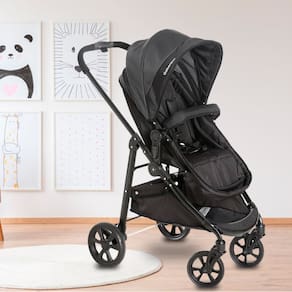 Carrinho de Bebê Olympus New Black Galzerano Todo o conforto e segurança para o seu filho sempre é bem vindo, pensando nisso a Galzerano tem os produtos alta qualidade para o seu bebê. O Carrinho de Bebê Olympus é indicado para crianças de a partir de 0 meses com peso até 15Kg. Sua estrutura é feito em aço super resistente, 2 rodas dianteiras giratórias e 2 rodas traseiras com sistema de freio, proporcionando total segurança na hora do passeio. Além disso, possui assento reversível que se transforma em moisés, protetor frontal removível, protetor de ombro com cinto de segurança de 5 pontos, sistema de travamento automático e sistema de fechamento a mão, tudo para a proteção do seu bebê. Para proteger do sol, possui capota removível e retrátil fácil de manusear. Pode ser acoplado com o bebê conforto, trazendo praticidade no seu dia a dia. O carrinho ideal para você passear com total conforto e tranquilidade!