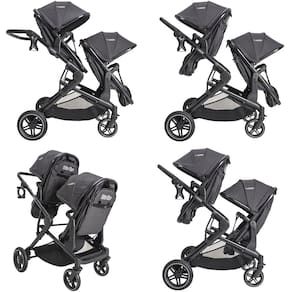 - Dois assentos reversíveis e independentes, que podem ser configurados de várias formas (frente a frente, virados para os pais ou para o mundo)