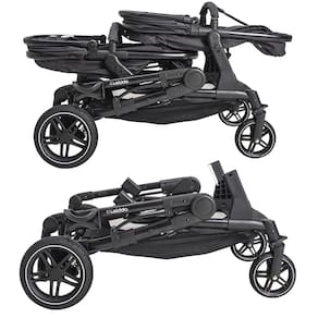 - Cintos de segurança de 5 pontos em cada assento, mantendo os bebês firmes e protegidos