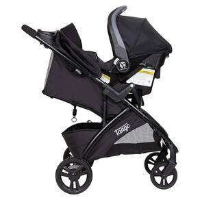 O design leve e elegante oferece fácil manobrabilidade, enquanto o posicionador de celular aceita os modos retrato e paisagem e a cabine confortável possui uma capota grande com proteção FPS 50, acolchoamento premium e suspensão dupla. Quando dobrado, o carrinho Tango fica 30 vezes mais compacto e fica em pé quando dobrado. Este carrinho é compatível com todos os assentos de carro para bebês Baby Trend.
