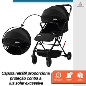- Fechamento ultra fácil - Bandeja para bebê - Assento com encosto macio e reclinável, capota retrátil, - Cinto de 5 pontos, estrutura leve - Carrinho 0-36 meses - Aprovado pelo INMETRO