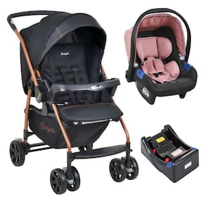 Conteúdo da Embalagem: 1 Carrinho de Bebê Rio K Preto Cobre Até 15Kg - Burigotto 1 Bebê Conforto Touring X Rosa Cinza - Burigotto 1 Base para Bebê Conforto Touring X - Burigotto