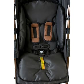Cabo Revestido em Couro Ecológico: Toque de sofisticação e conforto ergonômico para os pais.