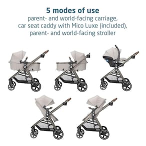Apresentamos o sistema de viagem modular Maxi Cosi Zelia Luxe 5 em 1, um conjunto combinado de carrinho e assento de carro infantil que proporciona praticidade, elegância e segurança para a jornada parental. O sistema oferece cinco modos de uso, permitindo que cresça com o seu bebê, desde uma combinação de carrinho de carro voltado para os pais até um carrinho e carrinho reversíveis para maior versatilidade. O conjunto inclui a leve cadeirinha infantil MICO LUXE INFANT CAR SEAT, projetada para ajustes rápidos e perfeitos entre o carro e o carrinho, e que possui recursos avançados de segurança, inserções infantis macias e tecidos PureCosi premium. Além disso, o carrinho é facilmente dobrável e independente, tornando o um carrinho de viagem conveniente para viagens de avião e fácil armazenamento em casa. O dossel MaxShade oferece proteção UV e ventilação excepcionais, enquanto detalhes em couro vegano agregam sofisticação e conforto. A tecnologia ClimaFlow na estrutura da cadeirinha garante que o bebê permaneça fresco e confortável durante as viagens. Descubra uma nova dimensão em sistemas de viagem para carrinhos de bebê com o conjunto combinado de carrinho e cadeirinha de carro MaxiCosi Zelia Luxe 5 em 1.