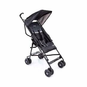 CARACTERÍSTICAS Indicação: dos 6 meses aos 15kg Leve, prático e compacto Fechamento estilo guarda-chuva Apoio de pés fixo para as crianças maiores Bolsa plástica para transporte Capota recolhível Manopla dupla e ergonômica Estrutura reforçada Rodas duplas Freio interligado nas traseiras Assento reclinável em 2 posições Composição: Revestimento: Poliéster; Estrutura: Ferro; Partes Plásticas: Polipropileno Aprovado pelo Inmetro