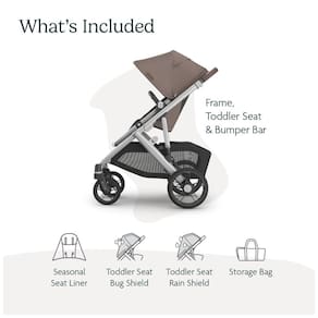 Componentes Inclusos: Carrinho, Assento para Criança, Proteção contra Insetos, Bolsa para Assento de Criança, Capa de Chuva para Assento de Criança,