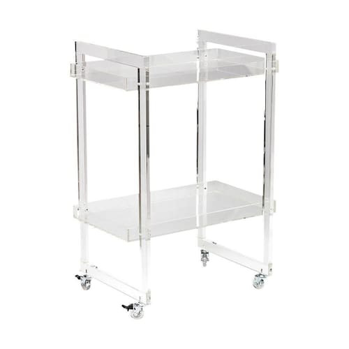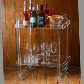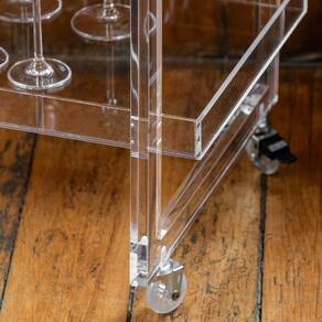 Com sua construção em acrílico cristal, este carrinho adiciona um toque de sofisticação a qualquer ambiente, complementando a decoração existente.