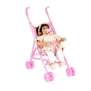 Carrinho De Boneca Infantil De Passeio Plástico Rosa 50cm