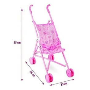 Carrinho de boneca infantil dobrável rosa menina bebê barato Carrinho para boneca dobrável tipo guarda-chuva estrutura em plástico com cesto em tecido. A boneca não acompanha o carrinho desenho apenas para ilustrar. Agora ficou mais prático brincar em qualquer lugar carrinho fácil de guardar e transportar. Características: composição: polímeros plásticos /metal fibras dimensão: 55cm estampa: varia de acordo com o cor: rosa Inmetro: 300/2002