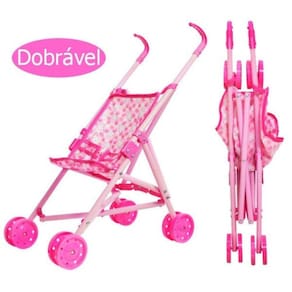 Carrinho De Boneca Infantil Dobrável Rosa Menina Bebê Barato