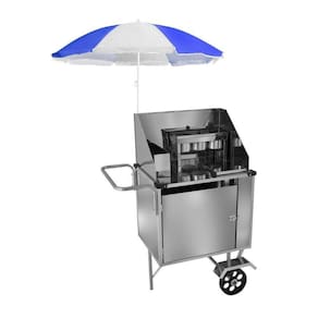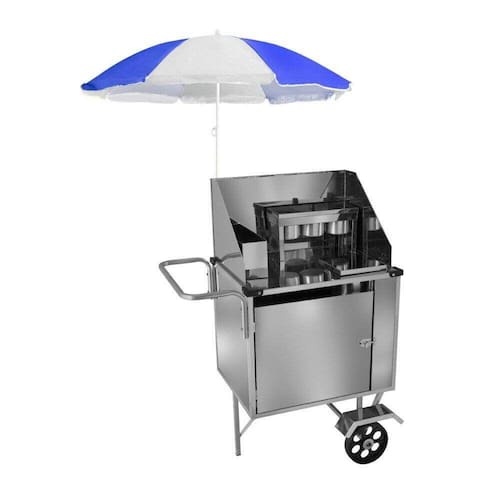 Carrinho de Cachorro Quente Inox com Guarda Sol e Rodas Maciças
