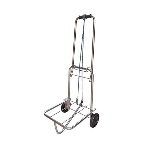 Carrinho de carga aço cromado dobrável 80kg com elástico carrinho de carga em aço cromado dobrável 80kg Carrinho para carregar as suas cargas, feito com aço Suporta até 80kg. Vai com corda para amarração. Pegador para as mãos. Rodas de plástico. Medidas aberto: - Altura: 98cm. - Largura: 33cm. - Profundidade: 35cm. Medidas fechado: - Altura: 60cm. - Largura: 39cm. - Profundidade: 20cm. Base de carga: - Largura: 33cm. - Profundidade: 35cm. Peso: 2,60 kg. Com de fábrica. Marca: Não Informado Ean: 300384124393