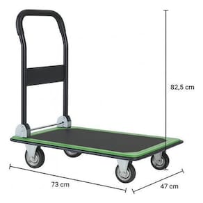 Praticidade, segurança e resistência em um só produto O carrinho de carga plataforma suporta até 150 kg, ideal para transportar objetos volumosos e pesados com muito mais conforto e estabilidade. Diferenciais do Produto: Freio de segurança: evita movimentações indesejadas, reduzindo riscos de quedas e acidentes. Dobrável: ocupa menos espaço e pode ser facilmente guardado após o uso. Conforto no manuseio: punhos e alças emborrachadas que reduzem o contato direto com o aço. Base ampla: 73 cm de comprimento x 47 cm de largura, facilitando o transporte de volumes maiores. Resistência: estrutura em ferro com base reforçada em borracha e ferro fundido. Mobilidade garantida: 4 rodas maciças em borracha e polipropileno, com diâmetro de 10 cm Especificações Técnicas: Tipo: Carrinho de carga plataforma dobrável Capacidade de peso: 150 kg não exceder capacidade recomendada Material do carrinho: Aço Material da base: Borracha + ferro fundido Material das rodas: Borracha e polipropileno Cor: Preto e verde Altura: 82,5 cm Largura: 47 cm Comprimento: 73 cm Diâmetro das rodas: 10 mm Quantidade de rodas: 4 Marca: Não Informado