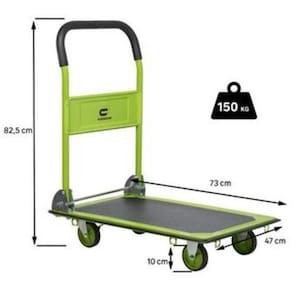 O Carrinho de Carga Plataforma 150kg Standers com freio que evita a movimentações indesejada, garantindo maior segurança. Ocupa menos espaço por ser dobrável podendo ser facilmente guardado. Tem punhos e alças emborrachadas que proporcionam maior conforto no manusear.Quer praticidade e segurança na hora de transportar seu pertences Sua base possui 73cm de comprimento e 47cm de largura o que facilita o transporte de objetos volumosos e pesados ele suporta até 150kg. Além disso possui freio que evita a movimentação indesejada evitando possíveis quedas e acidentes. E por ser dobrável ocupa pouco espaço podendo ser facilmente guardado. Mais uma das vantagens do carrinho Standers são seus punhos e alças emborrachadas que evitam o contato direto com aço proporcionando maior conforto no manusear.Para evitar que ser objetos caiam no transporte não deixe de utilizar não acompanha ganchos elásticosProduto Carrinho de CargaUso Indicado Para objetos volumosos e pesados.Tipo Plataforma DobrávelCapacidade de Peso 150 KgObservações sobre a Capacidade de Peso Não exceder a capacidade recomendadaAcompanha Rodas SimQuantidade de Rodas 4 roda(s)Tipo de Roda MaciçaMaterial das Rodas PlásticoTipo de Material das Rodas Borracha e PolipropilenoCor das Rodas PretoFreio para Roda SimDiâmetro das Rodas 10 mmMaterial do Carrinho FerroTipo de Material da Base do Carrinho Borracha e Ferro FundidoAltura 82,5 cmLargura 47 cmComprimento 73 cmLargura da Base do Carrinho 73 cmComprimento da Base do Carrinho 47 cmCor Preto e VerdeMarca StandersReferência do Produto PH150PProduto Acompanha Embalagem SimTipo de Embalagem CaixaAltura da Embalagem 73,8 cmLargura da Embalagem 48 cmProfundidade da Embalagem 11,4 cmPeso do Produto na Embalagem 8,446 KgConteúdo da Embalagem 1 Carrinho Marca: Standers