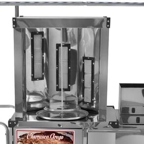Sua estrutura é fabricada em aço carbono com chapa de aço inox 430, sendo o carrinho de excelente qualidade e limpeza super prática contando também com um exclusivo adesivo e toldo para dias ensolados e chuvosos. Seu sistema de rodas pneumáticas permite que o Carrinho seja transportado por qualquer tipo de terreno fazendo com que a sua venda de Churrasco Grego seja conhecido em qualquer lugar.