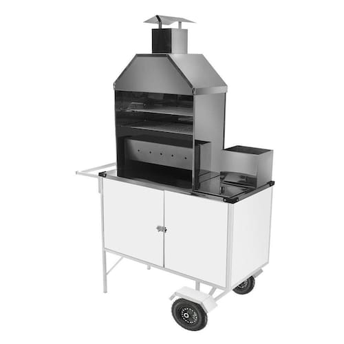 Ótima opção para quem quer ser um empreendedor, esse incrível carrinho de churrasco luxo com rodas pneumáticas, é um produto de excelente qualidade, de fácil manuseio e limpeza e muito prático. Produzido com materiais resistentes e de ótima durabilidade, você pode levar para festas, eventos, e tirar uma renda extra. Ainda, acompanha churrasqueira, 2 grelhas, adesivo na parte da trás, e um incrível reservatório térmico para bebidas. Conta ainda com um chassi em aço carbono e chapas de aço pintado. Sensacional não é mesmo, por isso não perca tempo, leve já, uma grande oportunidade de renda extra. Componentes: Chassi: 1 Cabo anatômico: 1 Torre: 2 chapas laterais e 1 chapa traseira Coifa: 1 Puxador com parafuso Philips: 1 Tampa do reservatório: 1 Suporte para churasqueira: 2 Churrasqueira: 1 Grelhas: 2 Parafusos roscas soberba: 10 Parafusos fendas e porcas sextavadas:7 Parafusos franceses e porcas sextavadas: 4 Objetos de decoração não inclusos. Imagens meramente ilustrativas. Cor: Branco e inoxModelo: LuxoMaterial do carrinho na parte branca: Aço carbonoMaterial do chassi: Aço carbonoMaterial da chapa: Aço pintadoPintura: EpóxiTipo de roda: PneumáticaIndicado: Churrasco Marca: CefazConteúdo da embalagem: 1 Carrinho de churrascoDimensões aproximadas do produto: 170 x 50 x 100 cmDimensões aproximadas da embalagem: 95 x 76 x 103 cmPeso aproximado do produto: 44 KgPeso aproximado da embalagem: 49 KgInformações Adicionais: Resistente e de ótima durabilidade