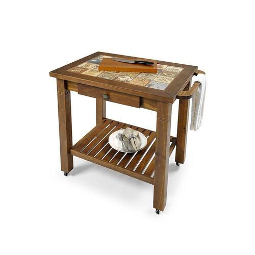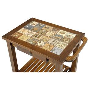 Carrinho de Churrasco Madeira Maciça com Rodinhas - Cerâmica Vintage -