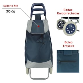 Carrinho De Compra Feira Dobrável 30Kg Com Rodinhas