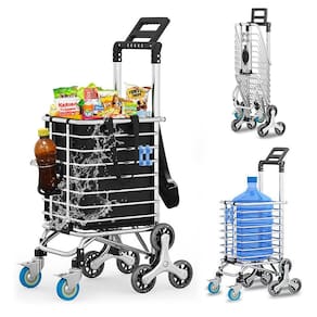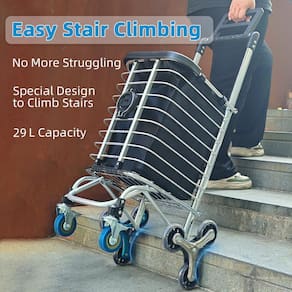 - Carrinho de escalada: com 8 rodas, 3 de cada lado da roda traseira e uma roda giratória de 360° em cada roda dianteira, este carrinho de compras foi projetado para subir escadas sem esforço. O carrinho de compras pode ser facilmente conduzido em cascalho, paralelepípedos, montanha, terra e estradas arenosas. Além disso, o carrinho de compras para escadas tem freios nas duas rodas dianteiras.
