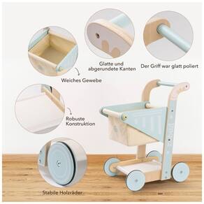 Desenvolva as habilidades de caminhar do seu bebê com este maravilhoso carrinho de compras de madeira. Ele ajuda os bebês a ficarem em pé e darem os primeiros passos, desenvolvendo a estabilidade e equilíbrio essenciais. Feito de madeira de alta qualidade, com construção resistente e durável, garantindo segurança com cantos arredondados e superfície lisa. Este brinquedo estimula o jogo interativo, oferecendo espaço para uma variedade de itens no carrinho, exercitando a comunicação, habilidades motoras e inspirando o jogo de papéis criativos. Um presente ideal para bebês que estão aprendendo a andar, perfeito para aniversários, Natal ou qualquer outra ocasião especial. Indicado para crianças a partir de 8 meses. O carrinho mede 35,5cm de comprimento x 27,9cm de largura x 48,3cm de altura.