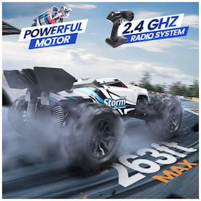 Carro RTR RC de excelente valor para iniciantes: A elegante carroceria do caminhão apresenta cores emocionantes, uma asa traseira rígida moldada por injeção para maior força descendente e os pára choques dianteiros protegem contra impactos. O forte chassi composto equilibra força, peso e desempenho.