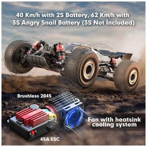 Sem escova: Hobby 2845 4200KV, motor de alto torque de 4 pólos com dissipador de calor de metal e design de ventiladores de resfriamento. O independente e o ESC 45A tornam este carro mais potencial e atualizável. A bateria recarregável 2S 7,4 V 2.000 mAh e o motor sem escova atingem mais de 40 km, h para adultos. velocidade medida por GPS