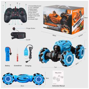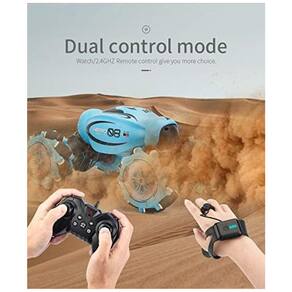 Modo de controle duplo remoto de relógio , 2.4 ghz lados duplos correndo, 45 indo para os lados, cruzando, movendo para frente , para trás, virando para a esquerda , direita, você pode controlar os carros rc em qualquer direção com seu controle remoto de 2,4 ghz assista ao controle do sensor de gestos e deriva rotativa de 360 graus para uma experiência de jogo diferente neste carro de acrobacias de controle remoto elétrico. O forte desempenho sem interferência o carro de controle remoto possui um sistema de controle sem fio que funciona com uma frequência de 2,4 GHz. O sistema de controle sem fio pode oferecer um sinal estável e possui uma função sem interferência. Permite que vários carros de acrobacias rc corram juntos ao mesmo tempo e local por cerca de 50 metros de controle remoto. Modo on road e off road o carro de controle remoto tem dois modos de transformação para correr em todos os terrenos. Modo on road para terreno plano e condução de lados duplos modo off rode levantou o chassi por , fácil de navegar terreno acidentado e conquistar vários terrenos como pastagens, terrenos arenosos, terrenos lamacentos, neve e assim por diante. Existem 9 pequenas rodas de eixo ao lado da roda central para que o carro de controle remoto possa se mover de forma mais flexível e rápida. Longa vida útil da bateria Este carro RC equipado com bateria recarregável de 3,7 V 1500mAh de alta capacidade. Depois de totalmente carregada, a bateria pode ser usada em torno de 30 minutos sem parar. O pacote também inclui um cabo de carregamento ubs, chave de fenda e manual, o conjunto completo de controle remoto evita acidentes cas por uso inadequado que aumentam a segurança