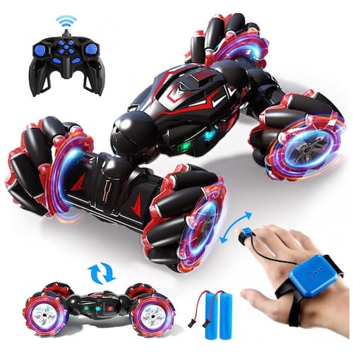 Este é um carro de controle remoto inteligente com tecnologia de transmissão de 2,4 GHz, que permite controle sensível e distância ultralonga. O pacote inclui um incrível relógio com controle remoto, permitindo que você mude a postura e o carro deformável possa sentir suas mudanças de postura, dirigir e mudar à vontade. Este monster truck 4WD RC está equipado com pneus OffRoad MultiRoller exclusivos, permitindo que ele enfrente qualquer terreno, incluindo areia, grama, terra e pedras. O carro remoto em escala 1:12 pode se mover em todas as direções, fazer rotação de 360, dirigir em ambos os lados e tem efeitos de luz e música para proporcionar diversão ilimitada para as crianças. A bateria recarregável atualizada de 3,7V 1300mAh oferece 50 60 minutos de uso com carga de duas horas. O controle remoto usa duas pilhas AA de 1,5 V não incluídas. Este carro de controle remoto é uma ótima ideia de presente para festas de aniversário, volta às aulas, Halloween, Natal ou para aliviar o desconforto.