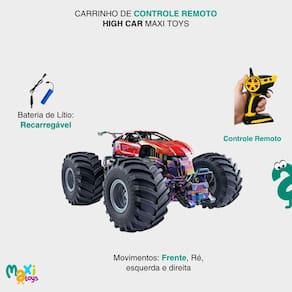 O Carrinho de Controle Remoto High Car Maxi Toys é a escolha certa para quem busca emoção, velocidade e muita diversão em cada corrida.