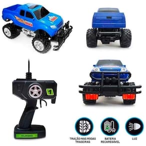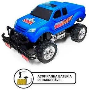 Carrinho de Controle Remoto - Monster Truck - 7 Funções - Azul - Polibrinq: Nada pode parar essa máquina! Esse carrinho de controle remoto Picape Monster Truck é ótimo para os meninos que procuram aventuras em quatro rodas, afinal o carro faz movimentos para frente, para trás, vira para direita e esquerda. O brinquedo tem como marca a velocidade, e fica mais emocionante quando os pequenos usam a criatividade para criar pistas e caminhos surpreendentes. Com tração nas rodas traseiras, nenhum terreno irá ousar pensar em te prender. Furioso de dia e de noite com suas luzes que farão todos estremecerem de tanto brilho. Detone tudo com esse Monster Truck! • Detalhes - Design arrojado de picape e detalhes impressionantes - Bateria recarregável e carregador incluídos - Alinhamento automático para você acelerar com tudo - Luzes para se garantir nas corridas noturnas - Escala de 1:10 - Movimenta-se: frente, frente à direita, frente à esquerda, para trás, ré à direita, ré à esquerda e função parar - Grandes pneus de borracha com tração nas rodas traseiras - Para-choque robusto - Design inspirado nos veículos clássicos de rally - Seja criativo e divirta-se brincando com a Cotiplás INFORMAÇÕES: • Produto: Carrinho de Controle 7 Funções Picape Azul • Coleção: Monster Truck • Marca: Polibrinq • Dimensões do produto (C x A x L): 35 x 21 x 22 cm • Tipo: Veículo de controle remoto • Categoria: Carrinhos e Cia • Conteúdo: 01 Picape Monster e 01 controle remoto • Recomendação: para crianças maiores de 03 anos de idade ESPECIFICAÇÕES: • Referência: 2271 • Código de Barras: 7898506722549 • Embalagem (C x A x L): 52 x 27 x 24 cm • Embalagem (Peso): 2,080 kg • Alimentação: - Veículo: Bateria recarregável 7.2v (inclusa) - Controle: Bateria 9v • Bateria: Carregamento via USB • Material / Composição: Plástico • Registro: CE-BRI/BRICS 00039-14 NM 300/2002 • Certificado: Órgãos Autorizados - OCP´S (Organismos de Certificação de Produtos) BENEFÍCIOS DE BRINCAR: - Eleva a autoestima - Exercita a memória - Estimula o raciocínio - Exercita o imaginário - Desenvolve a criatividade - Desenvolve percepção visual - Desperta a atenção e curiosidade - Desenvolvimento neuropsicológico - Estimula habilidades motoras básicas - Incentiva a comunicação e linguagem - Desenvolve aspectos emocionais e afetivo - Estimula o reconhecimento de formas e cores AVISO: - As imagens são meramente ilustrativas - Os tamanhos e medidas são aproximados - As cores e estampas dos produtos podem ter variações - As informações são de responsabilidade do fabricante ou fornecedor