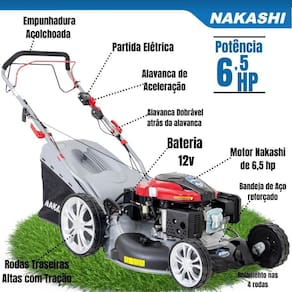 Cortador De Grama Nakashi LR-225TE A Gasolina 4 Em 1 6.5Hp 4T 196cc
