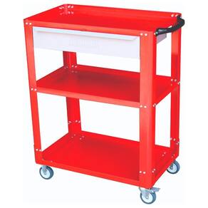 Descrição do Produto: Modelo: CD02. Cor: Vermelho. Pintura Eletrostática. Possui Reforços Nas Bandejas. Prateleira do Meio Regulável . Com Divisória na Gaveta. Capacidade de Carga: 120kg. Dimensões CxLxA : 65 x 41 x 85cm. Dimensão da gaveta CxLxA : 50 x 40 x 10cm. Gaveta Com Porta Cadeado e Divisórias. 4 rodízios de 3'' - 2 fixos/2 giratórios - 1 com freio. Montagem Com Parafusos e Porcas Galvanizadas.