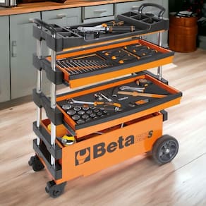 Conteúdo da embalagem: 1 Carrinho de Ferramentas Tipo Trolley Rebatível 2 Gavetas com 6 Tabuleiros Laranja C27S/O Beta