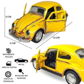 carrinho de ferro miniatura fusca envelhecido abre portas