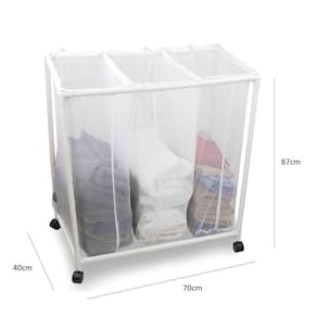 Carrinho de Lavanderia Triplo com Rodinhas e 3 Divisórias Organização e Praticidade