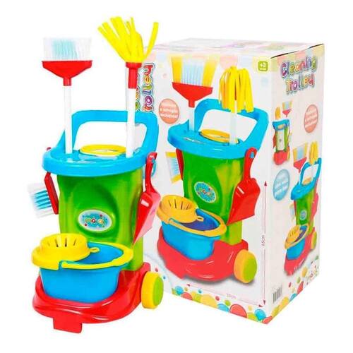 Aproveite a diversão e a imaginação das crianças com o Carrinho de Limpeza Colorido Cleaning Trolley da Maral!