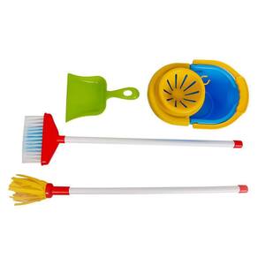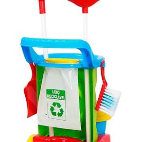 Composto por uma vassoura, uma pá de lixo, um espanador, um esfregão, um balde com escorredor, um suporte para saco de lixo, um saco de lixo e, é claro, o próprio carrinho de limpeza, esse conjunto proporciona uma experiência completa de brincadeira. As crianças podem fingir que estão varrendo o chão, recolhendo o lixo, passando o espanador e até mesmo lavando o chão com o esfregão.