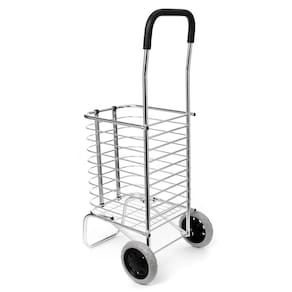 Carrinho de mão dobrável feito em alumínio super resistente para transporte de cargas, compras, serve tanto para uso doméstico, quanto para uso empresarial, escritórios com transporte de documentos, estoque, com transporte de pequenas peças, mercado, com transporte de compras.
