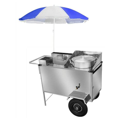 Carrinho de Milho Inox com Guarda Sol e Rodas Pneumáticas