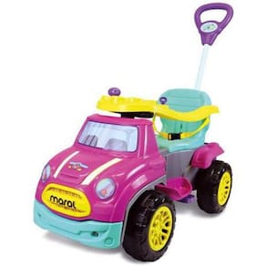 Carrinho de Passeio e Pedal Sport - Car Maral Rosa O pedal sport Car Maral é o carrinho de passeio e pedal desenvolvido para os pequenos curtirem ainda mais a brincadeira e desenvolverem a criatividade brincando. Ele é recomendado a partir de 12 meses e oferece inúmeros itens indispensáveis para quem zela pelo conforto e segurança do pequeno na hora da brincadeira. Além, é claro, do seu design único e sua estrutura resistente. Na função passeio o adulto toma controle das rodas através da haste-guia. Ele também acompanha anél de proteção com painél didático, chave e câmbio que fazem crek crek, cinto de segurança e apoio para os pés. Já para usar na função pedal, basta tirar o anél de proteção, haste e o apoio de pés que os pequenos terão controle do brinquedo. Informações técnicas: Função Passeio + Função Pedal: Sim Apoio para os pés Removível: Sim Anél de proteção Removível: Sim Cinto de Segurança: Sim Com corrente de bicicleta: Sim Haste-guia Removível: Sim Haste-guia direcionável: Sim Buzina: sim Porta Objetos: Sim Gancho para sacola: Sim Peso recomendado gancho: Até 1,5 kg Pedal com eixo de aço: Sim Idade Mínima Recomendada: 12 meses passeio 24 meses pedal Peso Recomendado: Até 25 kg Certificação Inmetro: Sim Dimensões do Produto (LxAxC): 48x112x55