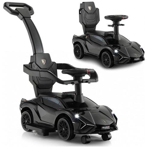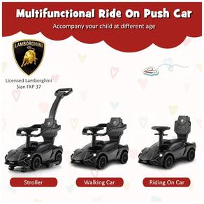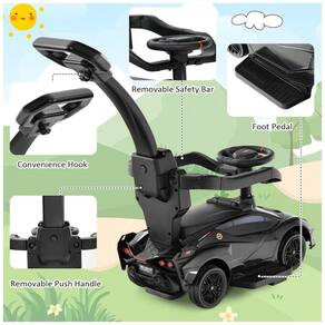 Carro de passeio: o carrinho de bebê INFANS vem com visual. O carrinho de criança é a combinação perfeita de estilo e funcionalidade. Este carro licenciado é o presente perfeito para uma criança. Carro de empurrar conveniente 3 em 1: O carro de passeio 3 em 1 pode ser transformado em carrinho de bebê, carrinho de passeio ou carro de passeio, permitindo que ele cresça com seu filho. O carro tem 2 modos de controle: controle dos pais e controle dos filhos. Além disso, o volante removível é conveniente para a mãe controlar a direção. A segurança é a primeira prioridade: Este carrinho de bebê foi projetado com guarda corpo de segurança removível e apoio para os pés, garantindo a segurança do seu filho durante os passeios. Além disso, dispositivos anti queda e pneus resistentes ao desgaste melhoram a estabilidade geral e evitam efetivamente tombamento. Ele pode suportar até 24 kg. Experiência de direção real: O carro deslizante possui um volante confortável, efeitos sonoros que imitam os sons de um motor real. Isso permite que seu filho sinta que está no controle de seu próprio veículo. Nota: 4 pilhas AA de 1,5 V não incluídas. Várias funções aplicáveis: O carrinho ambulante vem com um gancho conveniente, que pode transportar copos de água e sacolas infantis. Um espaço de zenamento escondido sob o assento para pequenos itens, como lanches e brinquedos. Além disso, o painel de controle possui um display de energia.