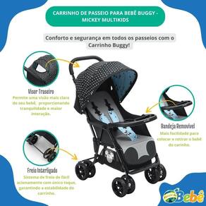 Carrinho de passeio para bebê tipo berço buggy mickey multikids O carrinho de bebê buggy foi pensado para os pais que buscam praticidade, sem abrir mão de conforto e segurança no dia a dia. Com um design moderno e funcional, ele traz tudo o que você precisa para tornar os passeios com seu pequeno ainda mais especiais. Super estiloso e prático, ele possui estrutura leve e resistente, com um sistema de fechamento envelope simples, que o deixa super compacto e fácil de transportar ou armazenar quando não estiver em uso. A capota retrátil, composta por 3 seções, possui camada dupla estampada, oferecendo proteção eficaz contra o sol e a chuva. Ela também possui visor, que permite uma visão clara e privilegiada do bebê, além de assegurar o conforto em qualquer clima. Já o apoio de pés é ajustável em 2 alturas, e a bandeja com porta-copos é removível, facilitando o processo de colocar e retirar o bebê do carrinho, tornando-o ainda mais funcional. Além disso, as 4 rodas são duplas, em eva de 14 cm de diâmetro, para garantir maior estabilidade. As dianteiras são giratórias com trava, e as traseiras equipadas com freio conjugado para maior segurança. Acompanha par de adaptadores para travel system compatível com o bebê conforto disney baby bb420 vendido separadamente , para uma transição perfeita do carrinho para o carro, sem perturbar o soninho do bebê. Principais características: - idade recomendada: do nascimento até 15kgs - peso máximo suportado: 15kgs - modelo: buggy mickey - design estiloso disney - ideal para passeios diários e viagens - garante praticidade, segurança e conforto - cinto de segurança de 5 pontos com ajuste de altura e largura - encosto reclinável em múltiplas posições - assento largo e confortável com 34cm de largura - reclina até a posição berço - reclina até a posição vertical - fechamento simples envelope - bandeja com porta-copos removível - capota retrátil com 3 seções - apoio de pés ajustáveis em 2 alturas - cesto porta objetos amplo - estrutura leve e resistente - fácil armazenamento e transporte - acompanha par de adaptadores para bebê conforto - compatível com bebê conforto bb420 vendido separadamente - aprovado pelo inmetro Especificações técnicas: - conteúdo da embalagem: 1 carrinho de passeio buggy multikids + par de adaptadores + manual de instruções. - dimensões do produto aberto axlxp : 48,0 x 58,0 x 97,0 cm - dimensões do produto fechado axlxp : 90,0 x 48,0 x 29,0 cm - composição/material: aço, eva, polipropileno, poliéster, pa e pom - peso: 5,100kgs - : 6 meses contra defeitos de fabricação pelo fabricante - certificação: inmetro 10689/2024-cac-1 abnt nbr 14389:2010 - código do fabricante: bb495 - ean: 7908842808842 - marca: multikids Imagens meramente ilustrativas. As cores e estampas podem variar de acordo com o lote do fabricante. Homologação Inmetro: CE-BRI/IQB 002295 54761/21-023